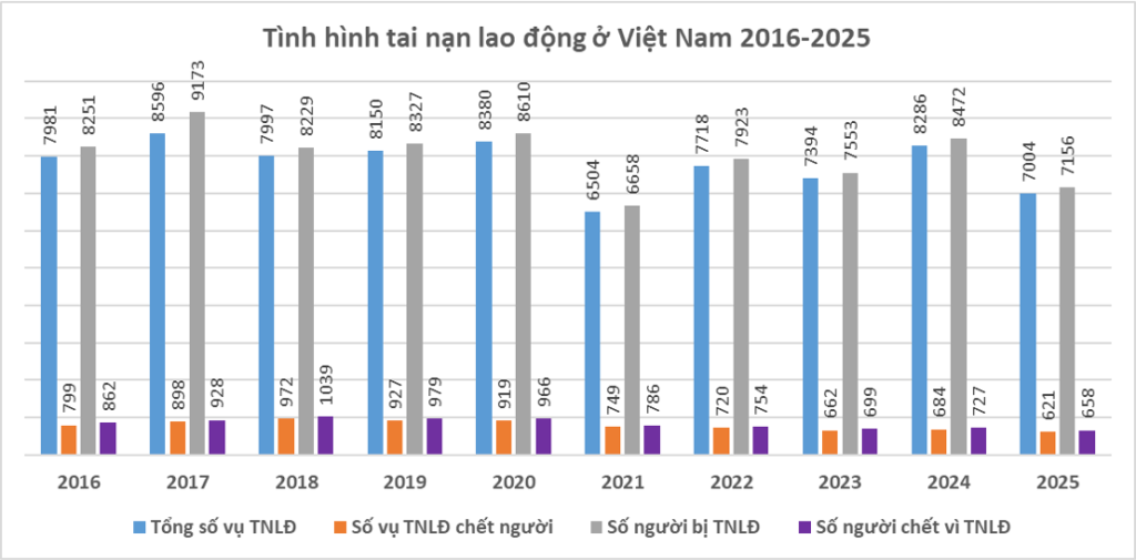 Tình hình tai nạn lao động năm 2025: các chỉ số đều giảm trừ số người bị thương nặng